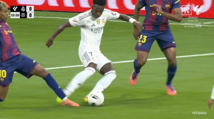 足球比分网10月29日讯 据媒体号Archivo VAR透露,在皇马2-1巴萨的国家德比中,裁判组对开场不久后的点球持有不同意见。 一部分裁判认为亚马尔的动作构成明显犯规。另一部分裁判认为是维尼修斯犯规。 最终,当值主裁判判定维尼修斯犯规,取消了点球判罚。
