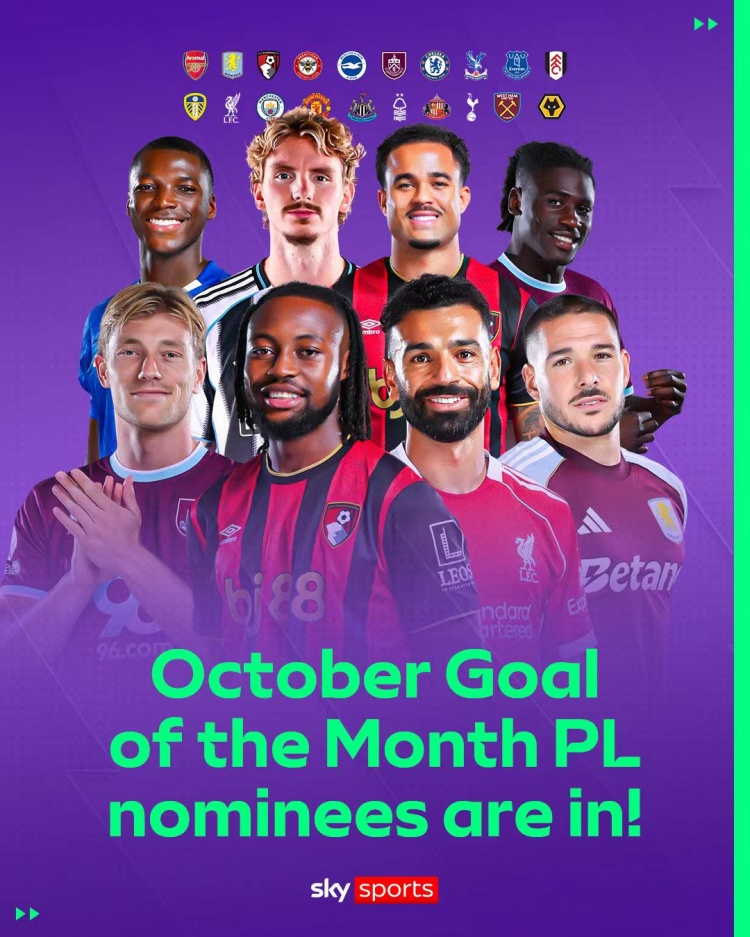 英超10月最佳进球候选:萨拉赫、凯塞多、沃尔特