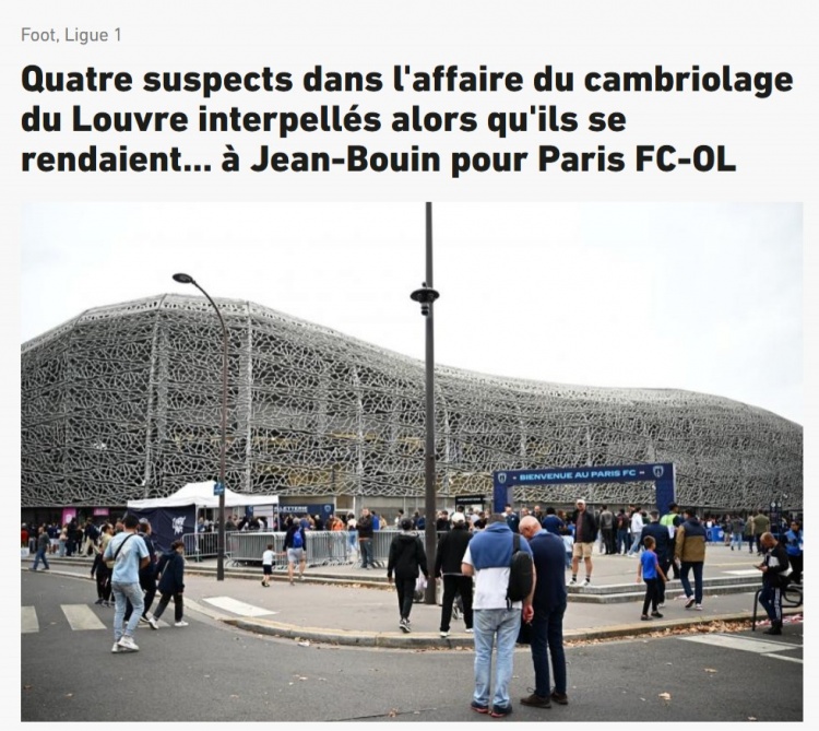 法媒:卢浮宫盗窃案嫌疑人在前往观战巴黎FCvs里