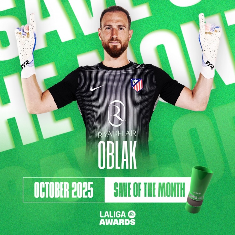 足球比分网10月30日讯 西甲官方宣布,马竞门将奥布拉克在对阵奥萨苏纳的神扑被评为西甲10月最佳扑救。 在本场比赛,马竞最终1-0小胜奥萨苏纳,奥布拉克在比赛第90分钟的神扑至关重要,面对近在咫尺的射门,他成功完成封堵帮助球队守住胜利。 |