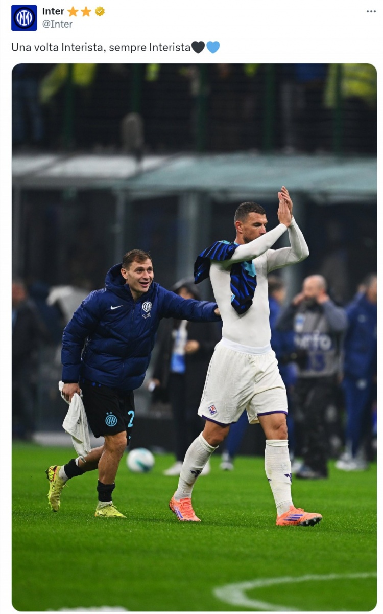 足球比分网10月30日讯 意甲第9轮比赛,国米主场3-0击败佛罗伦萨。 国米旧将哲科此役为佛罗伦萨替补出场,国米官方社媒晒出哲科的照片,致敬这位39岁的前锋,配文:“一日蓝黑,终生蓝黑。” 哲科2021年到2023年期间效力国米,出战101场比赛31球15助。 |