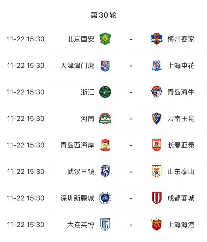 赛前半个月没比赛!中超收官战11月22日进行,各