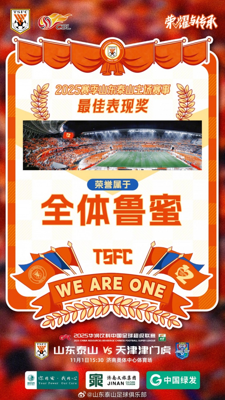 赛季主场收官战!泰山队发赛前海报:最佳表现