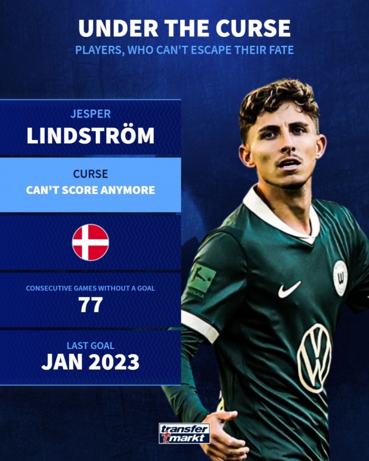 林德斯特罗姆——长期进球荒 连续77场比赛未进球 上次进球是2023年1月