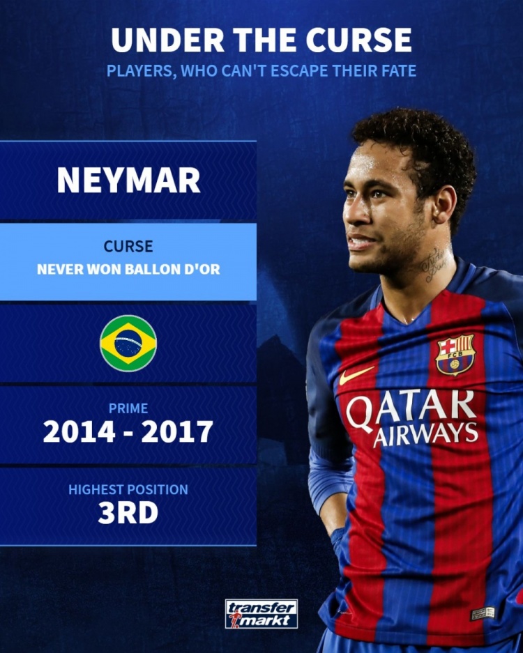 德转盘点“受诅咒”球员:内马尔无缘金球奖、