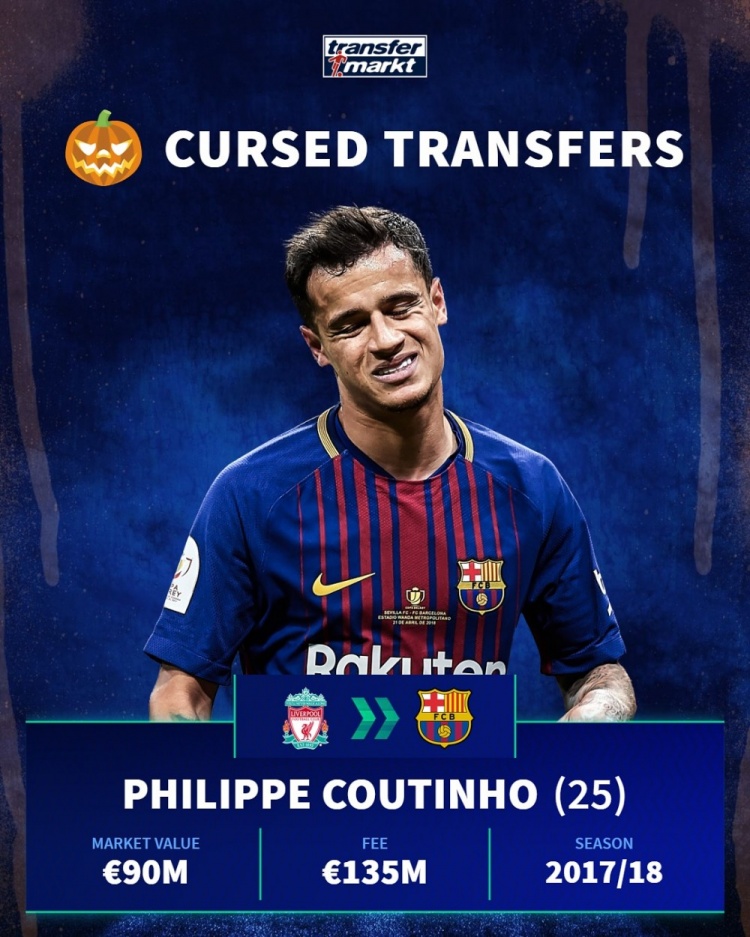 库蒂尼奥——利物浦→巴萨——1.35亿欧