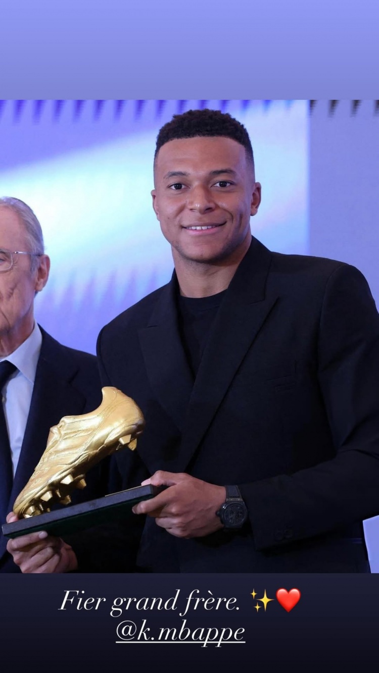 榜样!伊桑-姆巴佩祝贺哥哥领取欧洲金靴奖:为