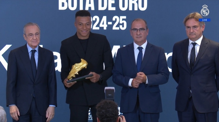 生涯首次获奖!姆巴佩领取24-25赛季欧洲金靴,皇