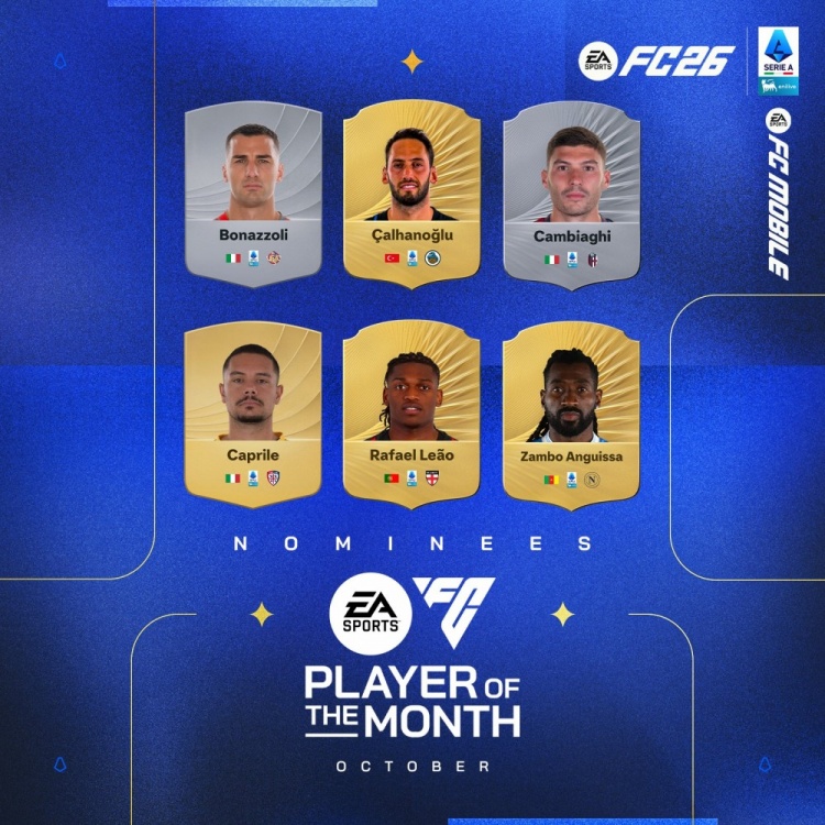意甲10月最佳球员候选:莱奥、恰尔汗奥卢、安古