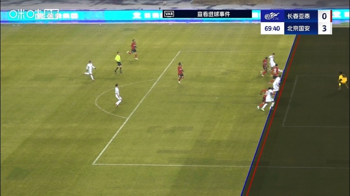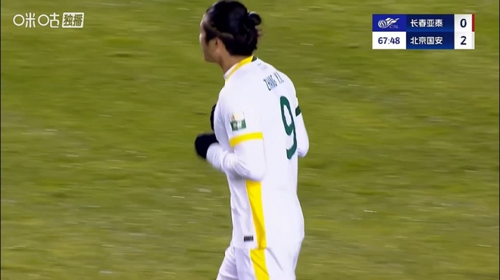 足球比分网11月01日讯 中超第29轮 长春亚泰vs北京国安。比赛第68分钟,张玉宁替补破门。VAR介入判越位在先,张玉宁进球无效,亚泰仍0-2国安