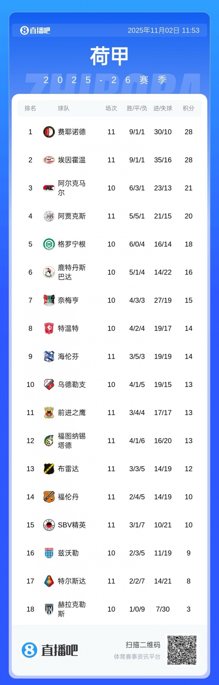 名师高徒!范佩西带费耶诺德领跑荷甲,上田绮