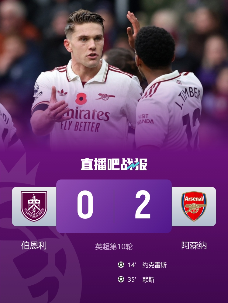 约克雷斯、赖斯破门,萨卡两失单刀,阿森纳2-0伯恩利,各项赛事九连胜,继续领跑积分榜。 五连杀!切尔西1-0热刺升第四 若昂-佩德罗制胜凯塞多助攻