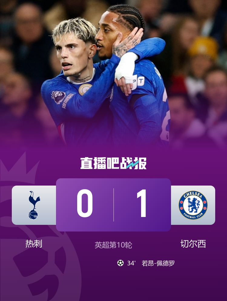 佩德罗失单刀后破门,切尔西1-0热刺,对后者五连胜,升入前四距榜首8分。 终结英超4连败!利物浦2-0维拉暂升第3 萨拉赫连场破门大马丁送礼