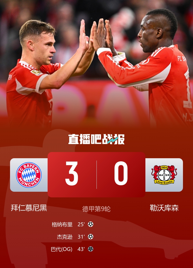 格纳布里、杰克逊破门,拜仁3-0勒沃库森豪取15连胜5分领跑。 7连胜!胜利2-1逆转费哈 C罗104分钟点射绝杀+双响+生涯第952球