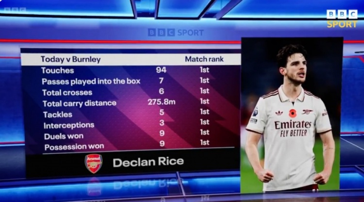 简直是战神!赖斯对阵伯恩利触球、抢断、拦截