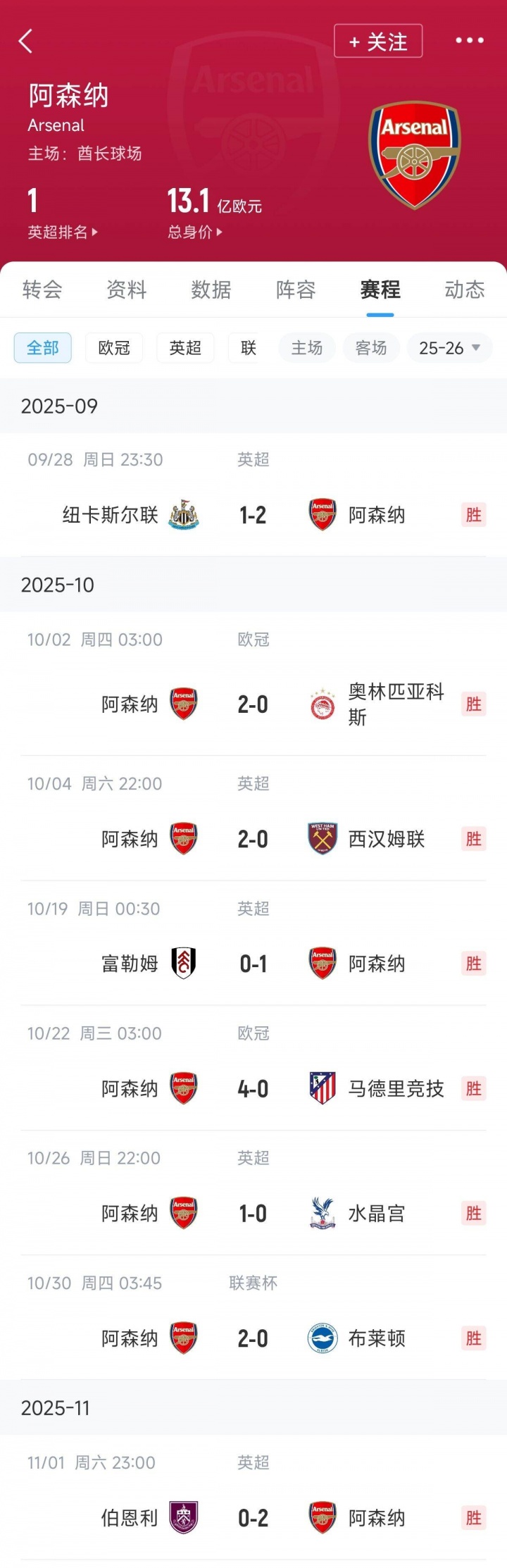叹息之墙!阿森纳近7战0失球,上次丢球是9月底