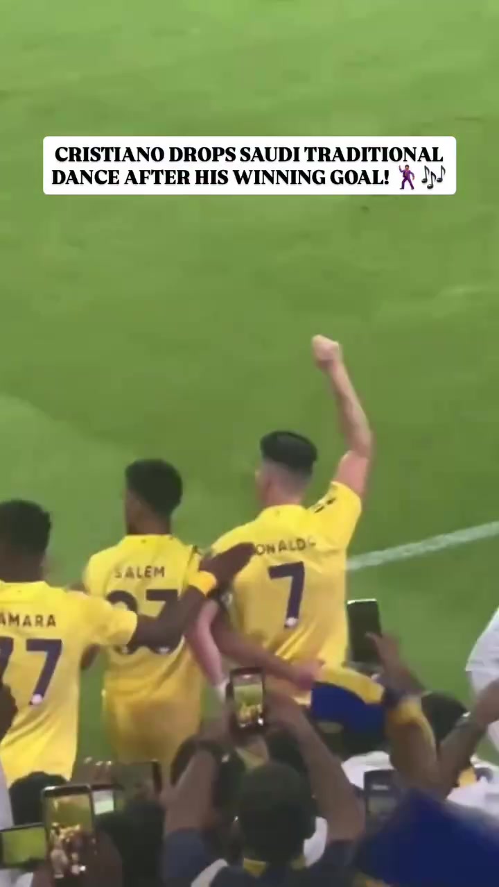 足球比分网11月02日讯 沙特联第7轮,利雅得胜利主场2-1逆转费哈。 补时C罗读秒点射绝杀,庆祝时菲利克斯从地上捡起疑似发带的东西给C罗戴上,随后C罗还跳舞庆祝进球。