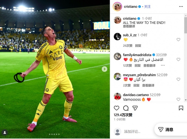 梅开二度助利雅得胜利逆转取胜,C罗晒庆祝照: