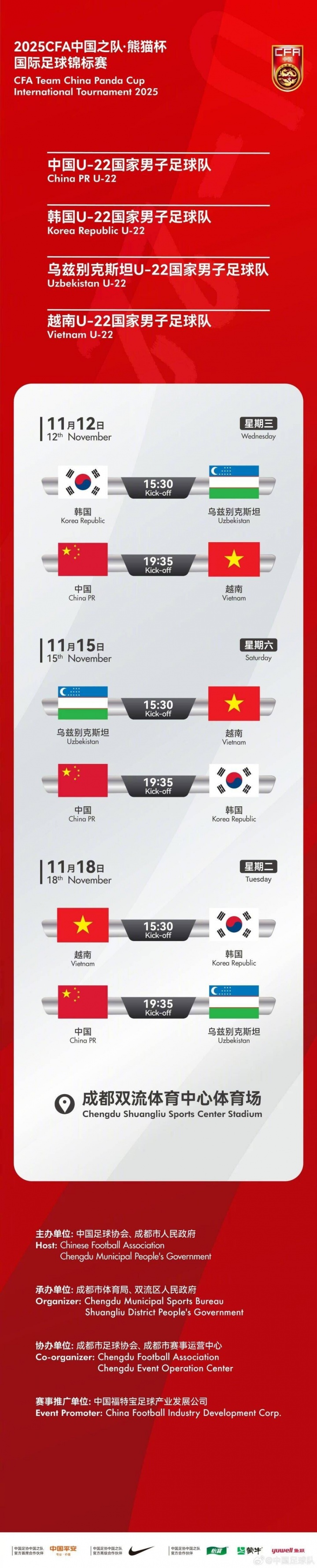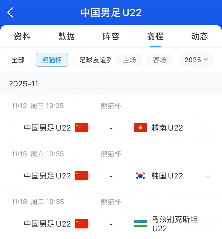 足球比分网11月05日讯 U22国足公布参加熊猫杯大名单,王钰栋、拜合拉木领衔,依木兰、刘诚宇、蒯纪闻入选。 名单如下: 门将:李昊(青岛西海岸)、霍深坪(浙江)、栾毅(石家庄功夫) 后卫:吾米提江(上海海港)、彭啸(山东泰山)、刘浩帆(浙江)、杨希(青岛西海岸)、汪士钦(浙江)、胡荷韬(成都蓉城)、张瑷晖(浙江)、贺一然(长春亚泰)、玄智健(长春亚泰)、鲍世蒙(苏州东吴) 中场:徐彬(青岛西海岸)、陈哲宣(天津津门虎)、杨皓宇(上海申花)、毛伟杰(大连英博)、李新翔(上海海港)、王钰栋(浙江)、蒯纪闻(上海海港)、陈泽仕(山东泰山)、依木兰(山东泰山)、鲍盛鑫(浙江)、木塔力甫(青岛西海岸)、李镇全(重庆铜梁龙)、王博豪(荷兰邓伯什) 前锋:刘诚宇(上海申花)、拜合拉木(深圳新鹏城)、朱鹏宇(大连英博)、向余望(重庆铜梁龙) 官方公告: 为备战2026年U23亚洲杯及名古屋亚运会,经队伍教练组研究、中国足球协会批准,中国U-22国家男子足球队定于2025年11月9日至19日赴四川省成都市组织集训并参加熊猫杯国际足球锦标赛。