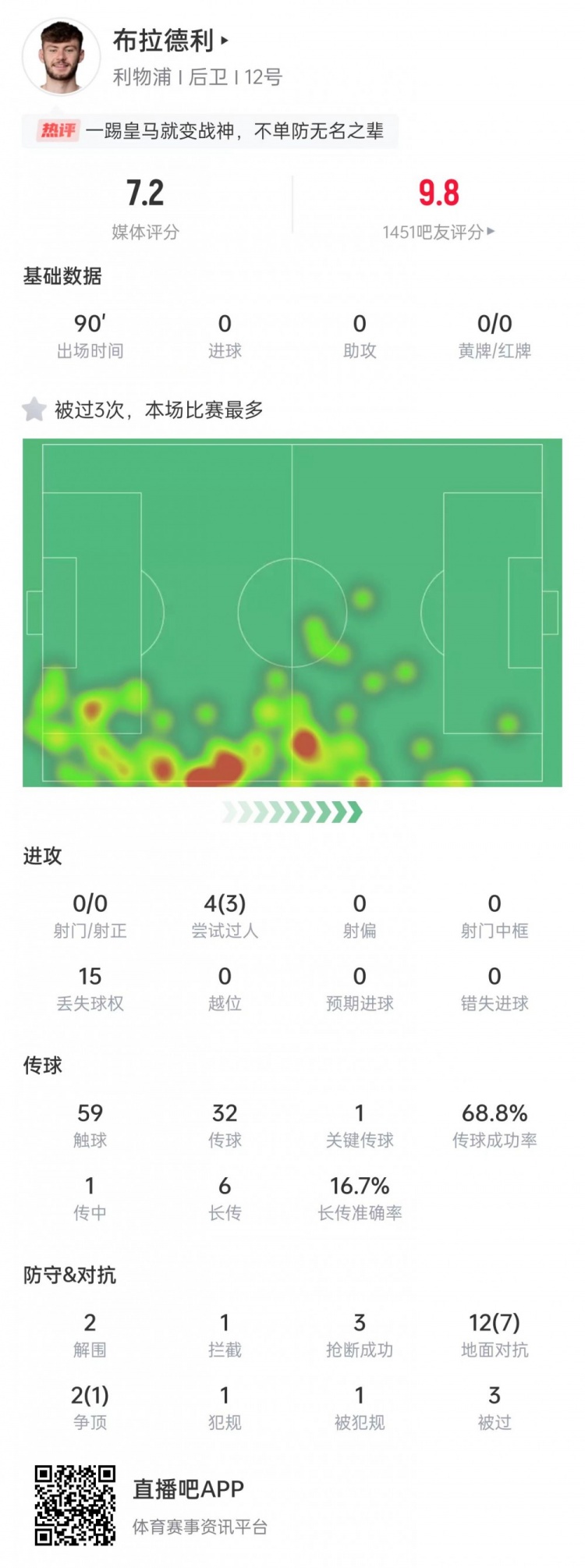 3次过人+3次抢断!布拉德利当选本轮欧冠利物浦