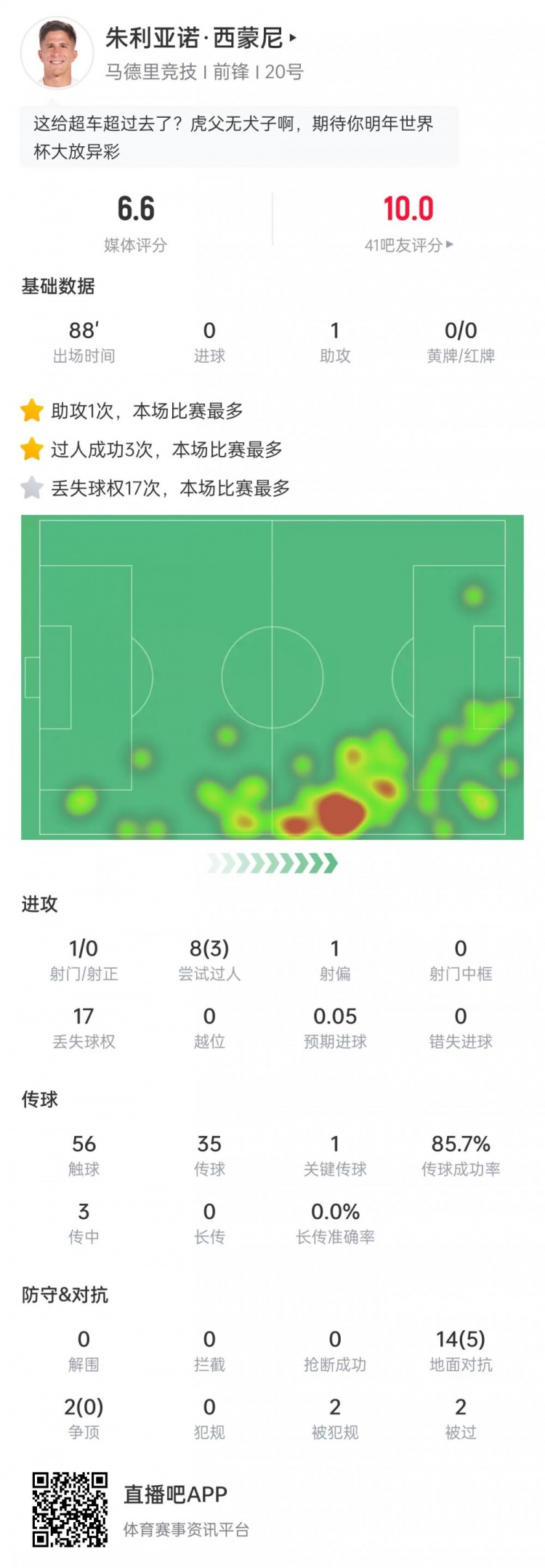 助攻小蜘蛛破门!小西蒙尼当选马竞vs圣吉罗斯全
