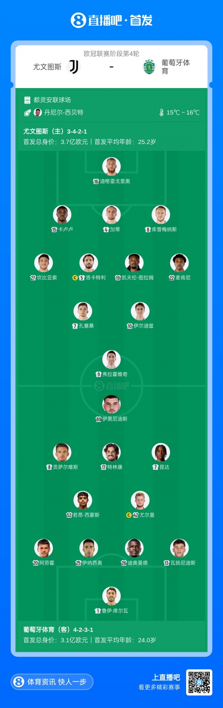 尤文vs葡体首发:孔塞桑、DV9、伊尔迪兹首发,