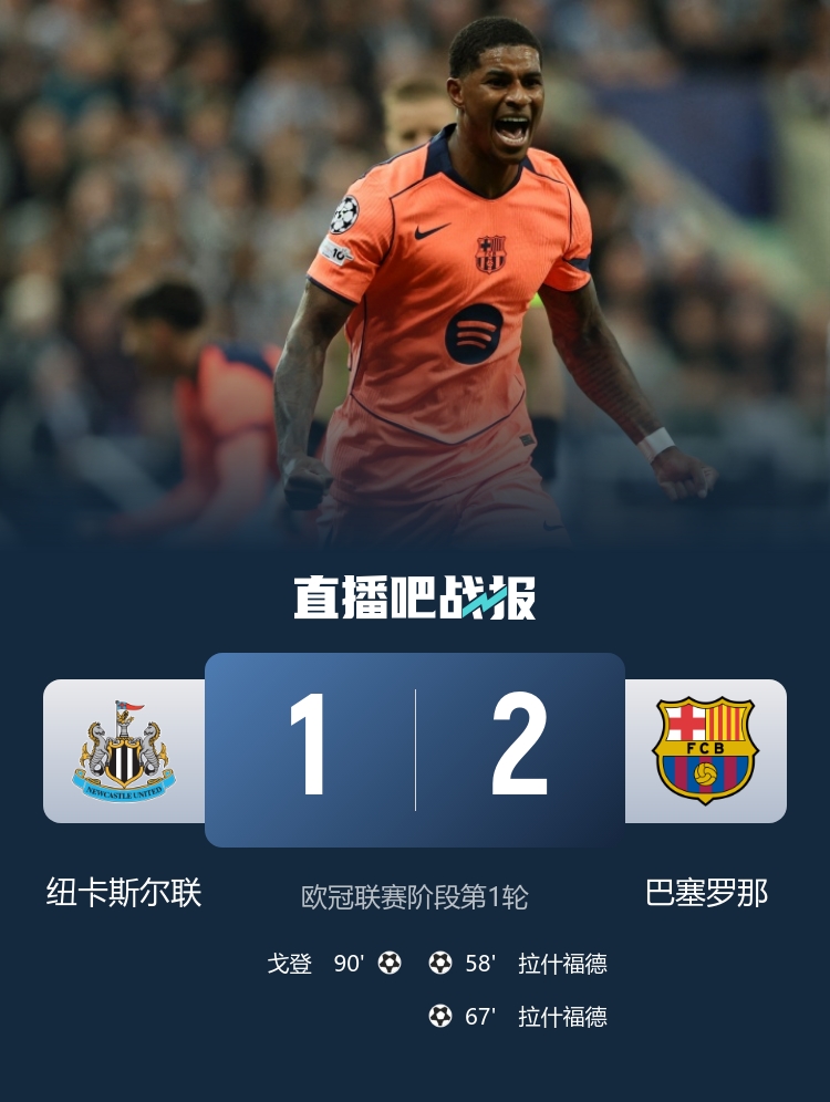 足球比分网11月06日讯 欧冠4轮战罢,英超和西甲一共交锋8次,西甲球队1胜7负战绩惨淡。 这8场比赛只有巴萨赢下了一场,他们2-1击败纽卡。其余7场比赛,西甲球队全败,且只进了2球。西甲合计1胜7负进4球丢16球。 欧冠前4轮英西交锋: 西甲7负: 毕尔巴鄂竞技0-2阿森纳 热刺1-0比利亚雷亚尔 利物浦3-2马竞 比利亚雷亚尔0-2曼城 阿森纳4-0马竞 利物浦1-0皇马 纽卡斯尔2-0毕尔巴鄂竞技 英超1负: 纽卡斯尔1-2巴萨