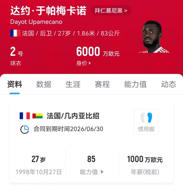 足球比分网11月05日讯 据记者Santi Aouna报道,皇马已经就免签拜仁中后卫于帕梅卡诺与球员达成口头协议。 该记者表示,于帕的实力和经验,加上本赛季结束后将成为自由身,使得他成为皇马管理层眼中的理想人选。巴黎也在密切关注于帕梅卡诺,他手中还握有拜仁的续约报价,但双方尚未达成一致。接下来要看这个障碍能否被克服,或者皇马能否让他改变原有轨迹,情况可能瞬息万变。 此外,利物浦中卫科纳特长期以来被认为是皇马的引援目标,他本人也希望加盟,但现在他已经不再是皇马的首选。事实上,他目前正受到巴黎的追求,并仍然持有利物浦提供的续约合同,于帕梅卡诺现在才是皇马的引援首选。