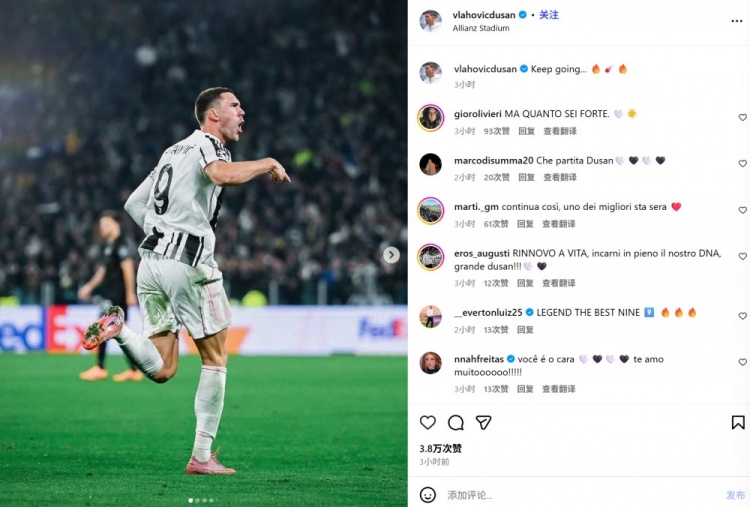 欧冠4场3球!弗拉霍维奇社媒晒庆祝照:继续前进
