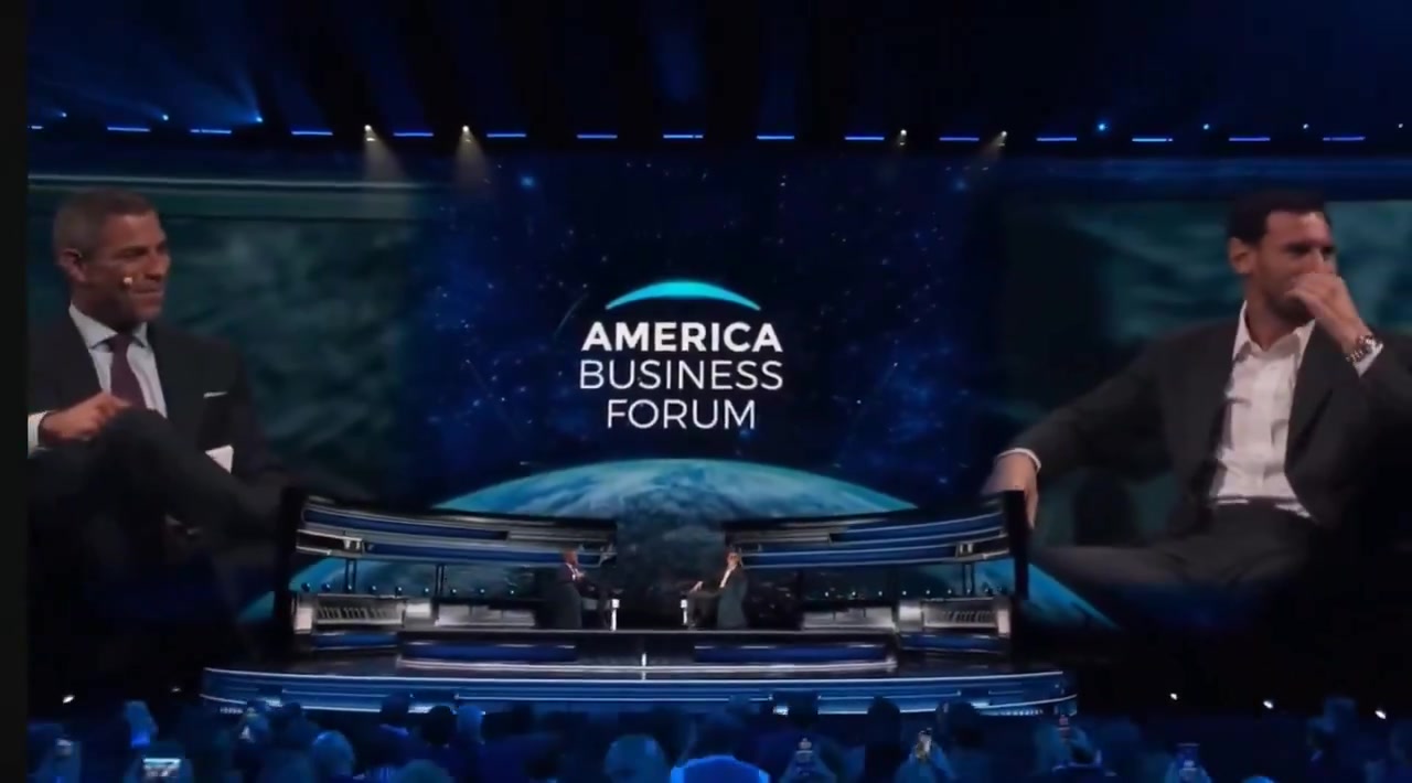 足球比分网11月06日讯 梅西出席美洲商业论坛,与主持人对谈。 在梅西和主持人刚坐下时,全场高喊梅西名字,梅西腼腆地笑了笑。 |