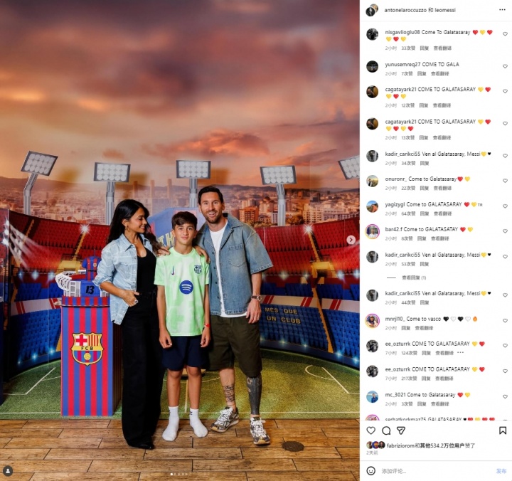 足球比分网11月06日讯 土耳其媒体fotomac今日发布报道称,土超豪门加拉塔萨雷正在密切关注此前刚刚与迈阿密国际完成续约的梅西的情况。 该媒体主编Zeki Uzundurukan表示,加拉塔萨雷正对梅西有意。在因世界杯而导致的美国大联盟4个月休赛期,梅西可能租借至加拉塔萨雷。俱乐部高层正在密切关注他的情况。 而这则新闻在土耳其国内无疑引发了极大的关注。在梅西社媒为儿子蒂亚戈庆祝生日的动态下,涌入了相当多的加拉塔萨雷球迷刷屏:“来加拉塔萨雷!” 不过,梅西也并非被土耳其球迷“攻陷”社媒的头一位。此前,如桑乔、奥斯梅恩等球员一旦传出与土超球队之间的绯闻,其社媒就会遭到土耳其球迷的大规模刷屏。 两周前,迈阿密国际刚刚官宣与38岁的梅西完成续约,新合同至2028年,届时梅西将年满41岁。