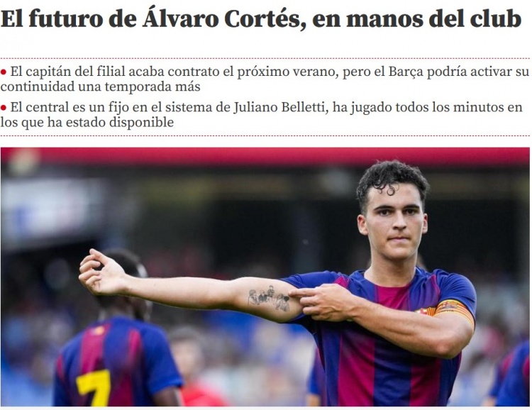 足球比分网11月7日讯 《世界体育报》报道,巴黎圣日耳曼有意巴萨B队队长阿尔瓦罗-科尔特斯,他的合同将在明年到期。 20岁的阿尔瓦罗-科尔特斯司职中后卫,他是巴萨B队主帅贝莱蒂麾下的关键球员。他与俱乐部的合同将在2026年到期,因此现在巴黎圣日耳曼正在关注他的动态。 但巴萨方面并不着急,因为俱乐部拥有续约球员一年的条款,可以将他的合同延长至2027年,因此,巴萨目前还未就科尔特斯的续约展开谈话。不过,在每年的这个阶段,巴萨的体育管理部门也已经开始为未来做规划,所以应该很快会对球员的未来做出决定。 |