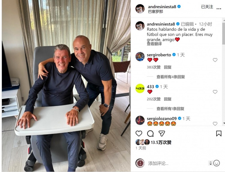 朋友你还好吗?伊涅斯塔看望患有渐冻症的前巴