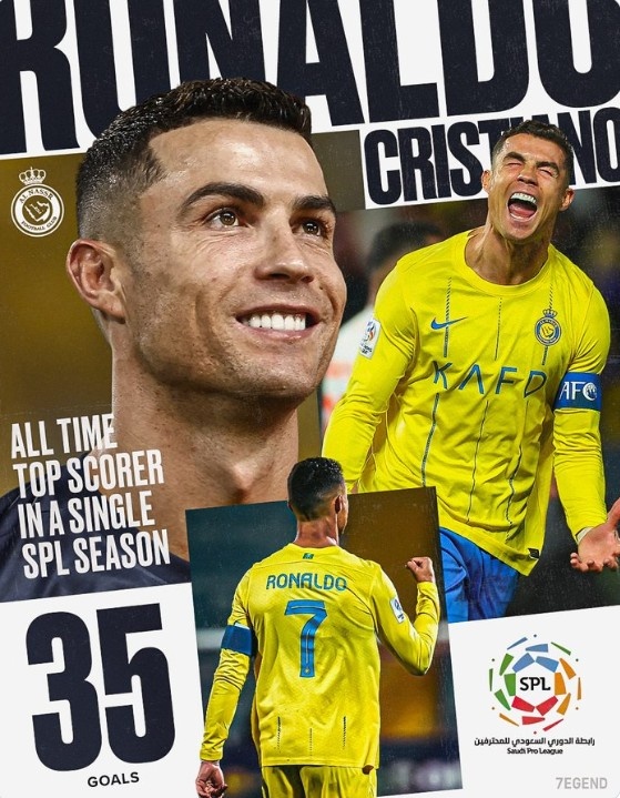 C罗之路 自2022年12月加盟利雅得胜利以来,C罗迅速进入状态。尽管在群星璀璨且投资巨大的沙特联中,他尚未带领球队赢得荣誉,但个人表现依旧出色。 在2023-24赛季,C罗以35球排在射手榜榜首,并在接下来的赛季中再进25球,成功卫冕金靴。