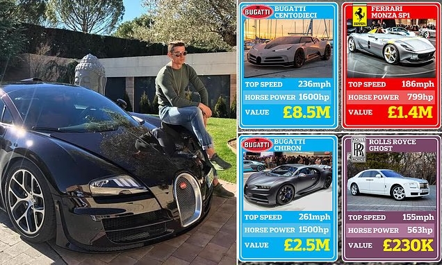 法拉利Monza C罗拥有的其他车辆包括一辆银色法拉利、一辆奔驰AMG GLE 63和一辆黑色奔驰,以及一辆价值200万镑的布加迪Chiron、一辆价值50万镑的法拉利599 GTO和一辆价值75万镑的迈凯伦塞纳。