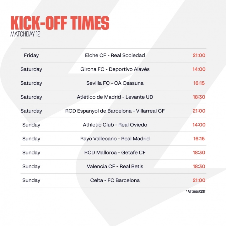 2025/26赛季西甲联赛赛程已近三分之一,第12轮争夺即将打响。本轮多场对决颇具看点,尤其皇家马德里与巴塞罗那双双客场作战,挑战重重。 皇家社会本轮将同样出征客场,球队在上周末赢得巴斯克德比后士气正盛,目前已在各赛事中斩获三连胜。他们将于北京时间周六凌晨客战埃尔切,力争再取三分。 周六晚至周日凌晨将上演四场较量,首场比赛由吉罗纳对阵阿拉维斯。阿拉维斯本赛季在主教练库德特的率领下表现出色,目前已攀升至积分榜第八位。此次客场对阵排名垫底的吉罗纳,他们渴望再添一胜,进一步提升排名。