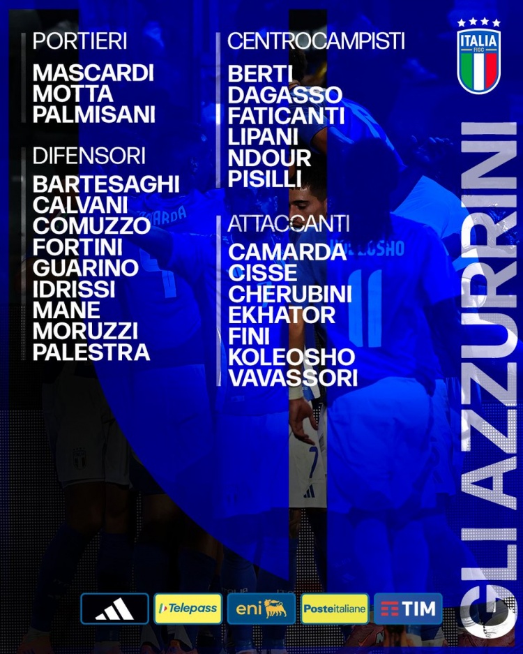 意大利U21名单:巴特萨基、皮西利、卡马达、科