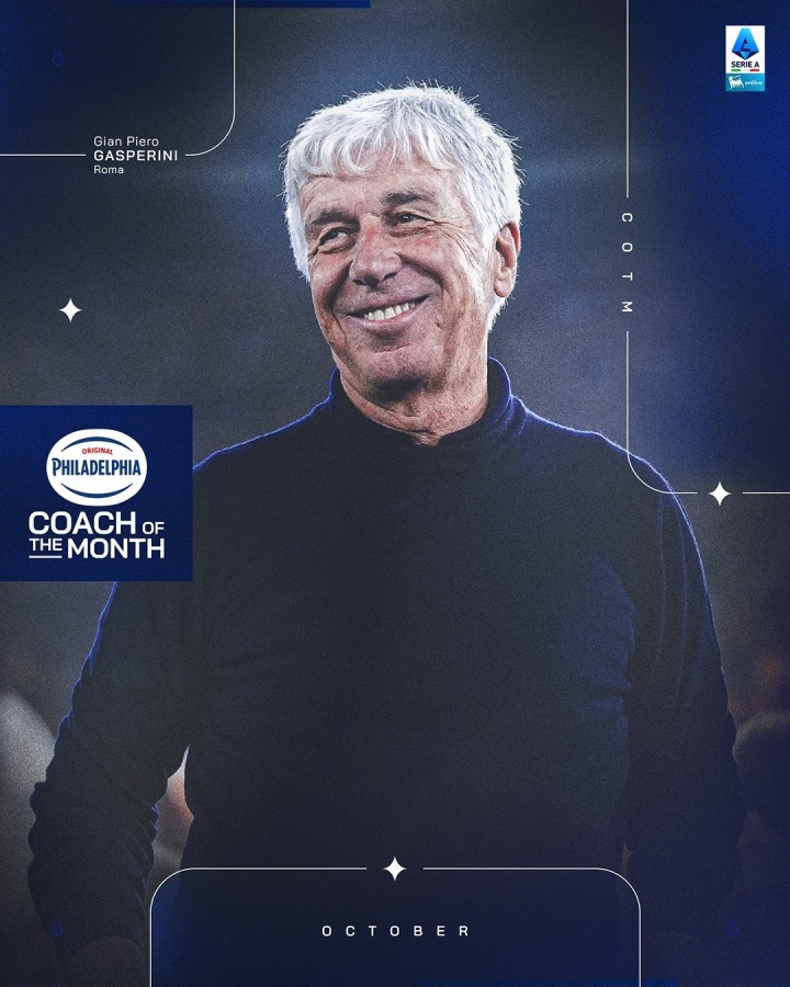 意甲官方:罗马主帅加斯佩里尼当选10月最佳主帅