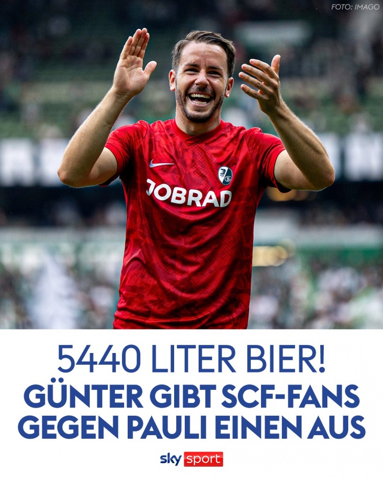 足球比分网11月8日讯 北京时间明天晚上,弗赖堡将在德甲第10轮比赛中主场对阵圣保利。 弗赖堡队长冈特已经为球队出场440次,从而超越泽耶尔,成为弗赖堡队史出场次数最多的球员。 据德国天空体育报道,为了庆祝达成这一里程碑,冈特将在这场比赛中请弗赖堡球迷喝啤酒,他将为球迷准备5440升啤酒。 |