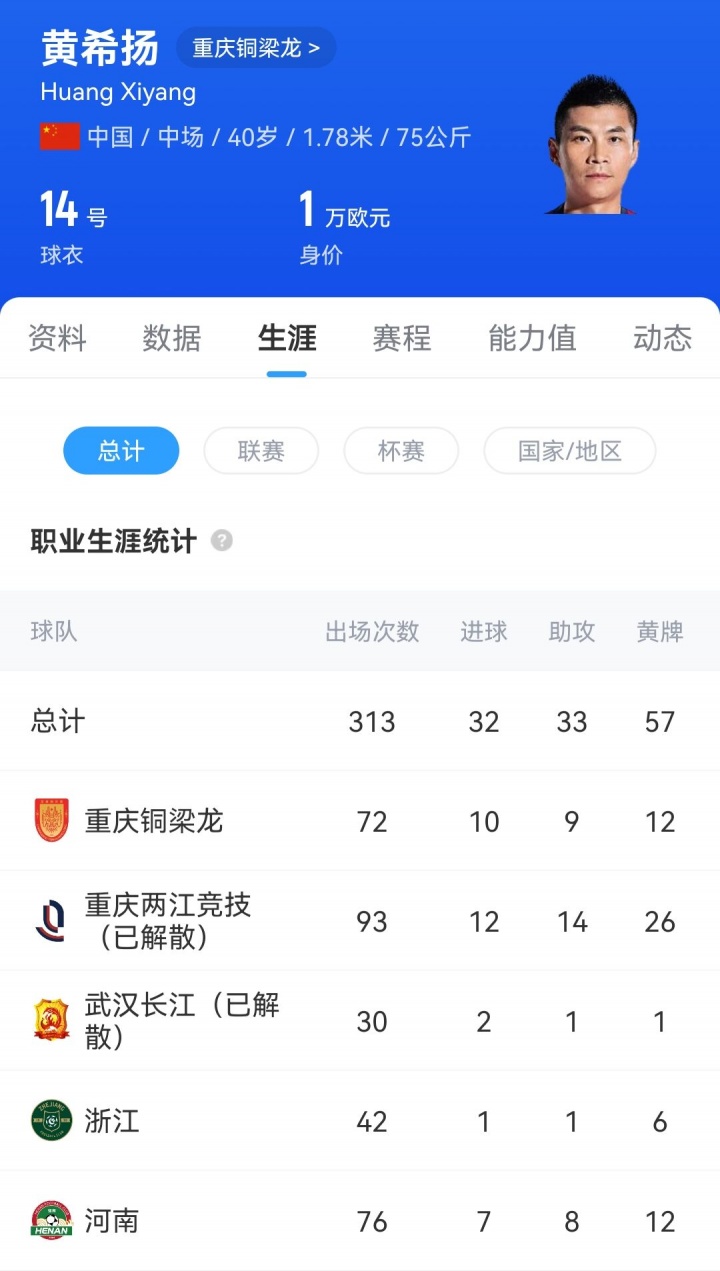 足球比分网11月09日讯 在昨天的中甲最后一轮比赛中,重庆铜梁龙2-0战胜上海嘉定汇龙,排名积分榜第二成功冲超。 作为队内年龄最大的球员,40岁的中场黄希扬亲历了重庆足球这几年的起落。 黄希扬是一名地地道道的重庆籍球员,职业生涯也起始于重庆队,之后他也曾辗转河南、杭州绿城、武汉长江,在2020年他又加盟重庆力帆。 但在2022年5月,已经更名为重庆两江竞技的球队长期面临资金困难,最终还是无法坚持退出中超并解散。当时黄希扬在离开俱乐部时,球迷围在他身边给予了鼓励和支持,黄希扬潸然泪下,很遗憾地说着“对不起你们”。