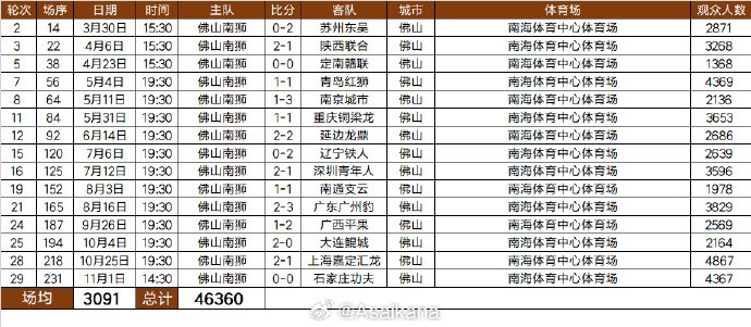 2025中甲联赛大连鲲城队现场观众人数统计:合计75534人次,场均5036人。 2025中甲联赛定南赣联队现场观众人数统计:合计106255人次,场均7084人。 2025中甲联赛佛山南狮队现场观众人数统计:合计46360人次,场均3091人。 2025中甲联赛广西平果队现场观众人数统计:合计101700人次,场均6780人。