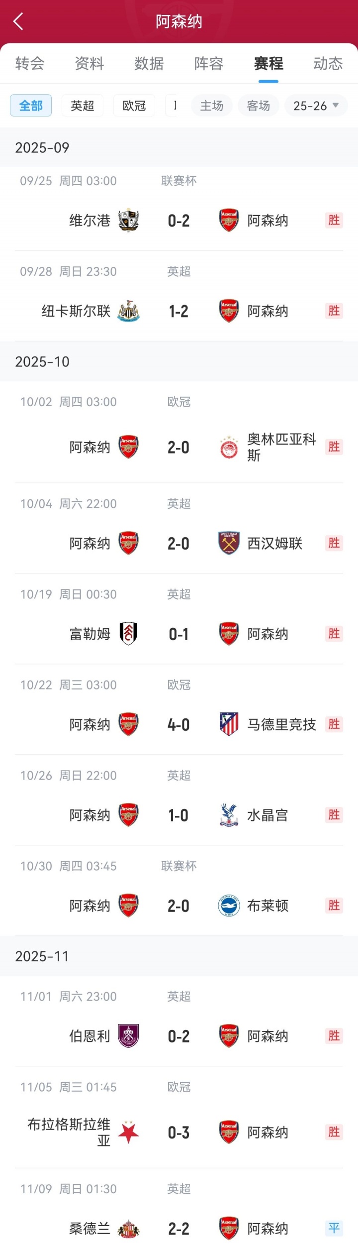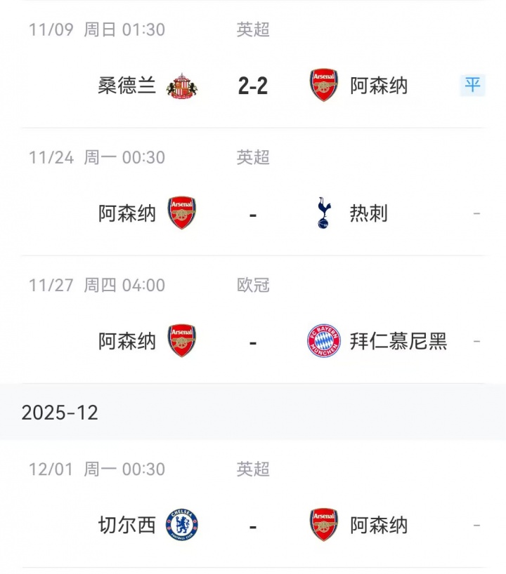 阿森纳未来赛程↓