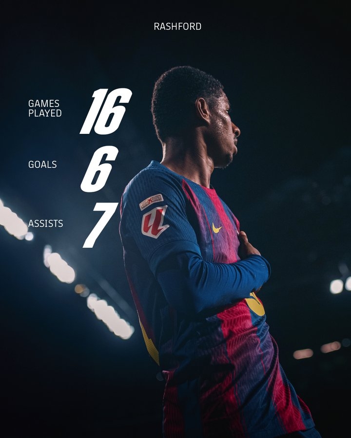 涅槃!巴萨官方晒拉什福德数据:16场6球7助,势