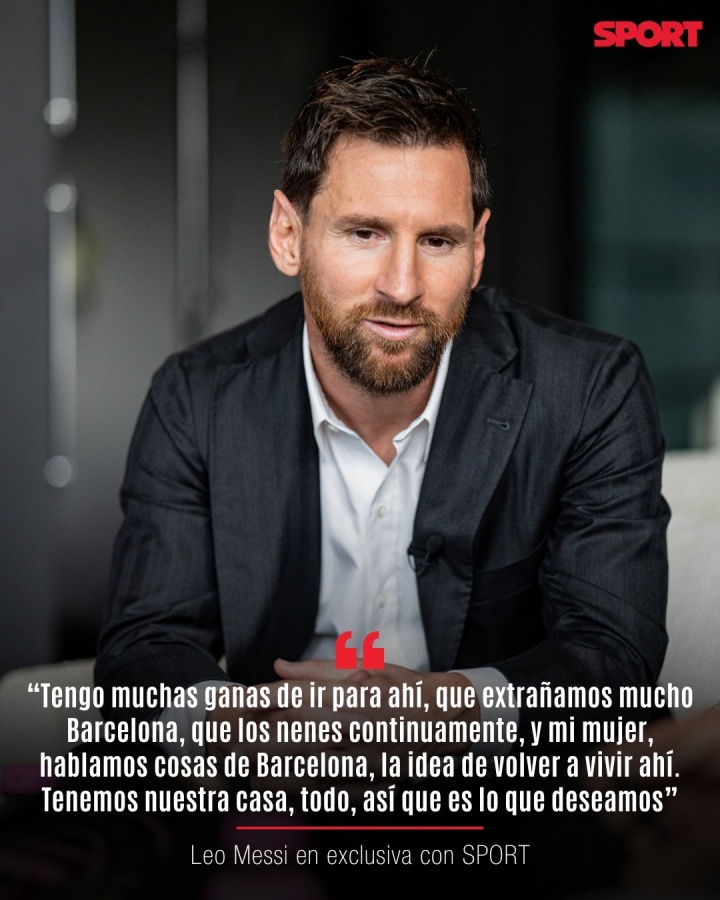 问:最后,您想对足球界的人们,特别是巴萨的人们,传达什么信息吗? 梅西: 我非常渴望回归(巴塞罗那),我们非常想念巴塞罗那。孩子们总是念叨着,还有我的妻子,我们总会聊起关于巴塞罗那的事情,我们有回去生活的想法。 在那里有我们的房子,有一切,所以这是我们的愿望。我非常渴望在新诺坎普建成后回去看看,因为自从我去巴黎后,我就没回过诺坎普,后来他们搬去了蒙特惠奇(奥林匹克体育场)。 回到新诺坎普会感觉有点奇怪,看到它会很激动,因为我最后一次见到它是很久以前了,重新体验和回忆所有往事会令人激动,即使体育场已经不同了。感谢大家始终如一的厚爱,除了感谢,还是感谢。 |