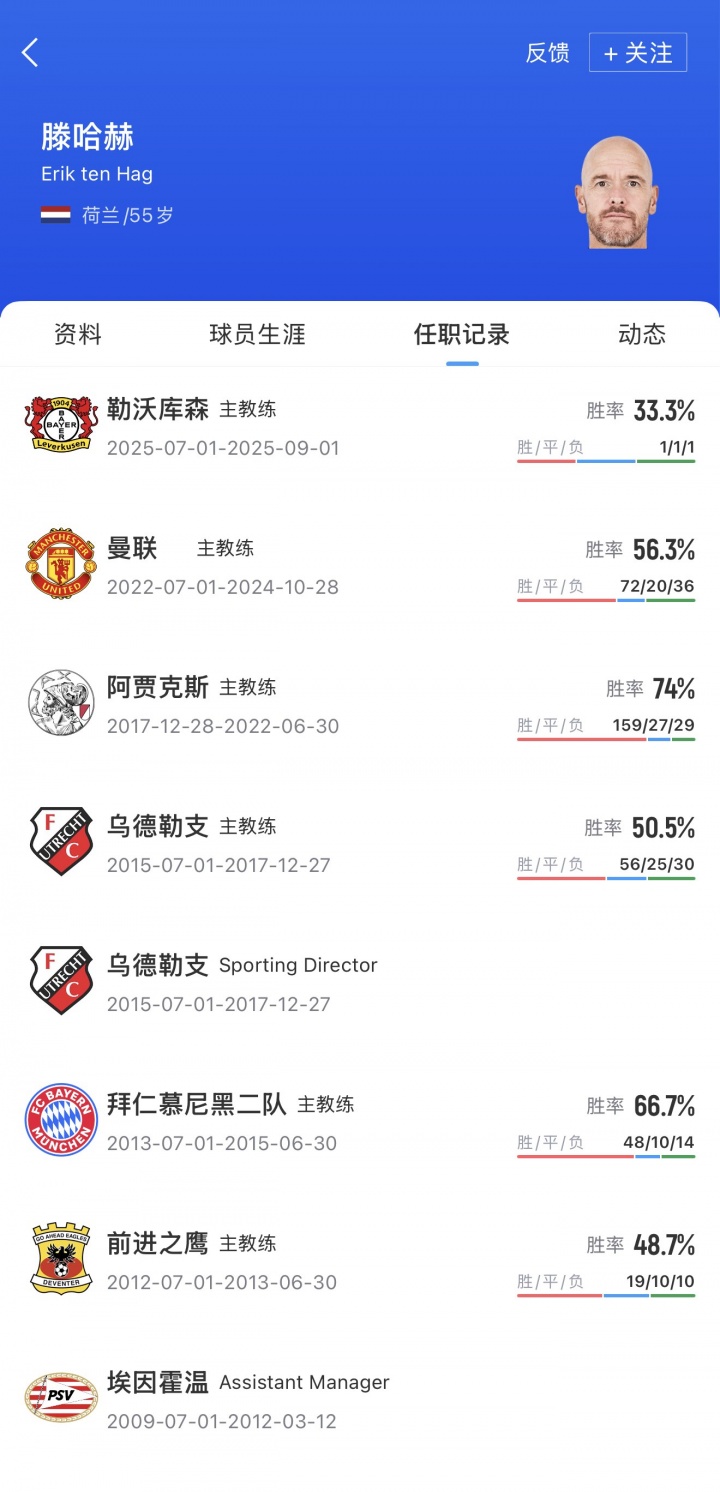 多家荷媒:滕哈赫拒绝重返阿贾克斯 他认为目前缺