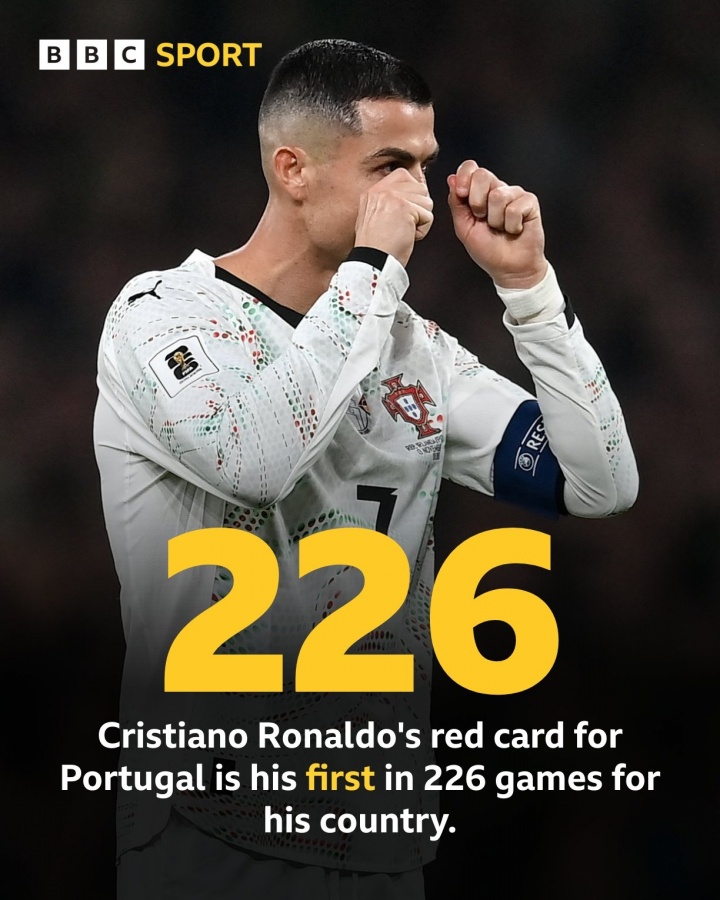 足球比分网11月14日讯 葡萄牙vs爱尔兰,C罗下半场因肘击动作被罚下。 根据统计,这是C罗226场国家队出场首次被罚下。如果计算整个职业生涯,这是C罗第13次染红,此前12次都是发生在俱乐部赛事。