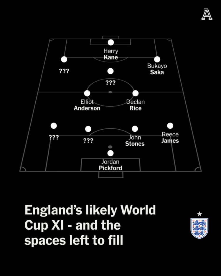 足球比分网11月13日讯 据The Athletic报道称,英格兰队世界杯7个首发位置已确定,贝林厄姆、帕尔默、福登等球员将竞争10号位首发。 其中,皮克福德将是主力门将,里斯·詹姆斯是主力右后卫,斯通斯确定一个首发中卫位置;中场位置确定了赖斯、埃利奥特·安德森两个首发;前锋位置凯恩、萨卡稳坐首发。 剩余四个位置,中后卫方面,图赫尔非常欣赏斯通斯,他是图赫尔麾下经验最丰富、成就最高的球员之一。但谁将与斯通斯搭档,目前还不明朗。目前来看,孔萨和格伊难分伯仲,两名球员实力相差不大。孔萨年纪稍长,但格伊经验更丰富。丹·伯恩、查洛巴或宽萨也有机会证明自己。 左后卫方面,斯凯利在图赫尔执教的8场比赛中5次首发,斯彭斯在对阵威尔士的比赛中首发,利夫拉门托仅代表英格兰成年队出场过3次,而奥莱利最近在曼城担任左后卫的表现非常出色。 左边锋方面,拉什福德和戈登将竞争英格首发。拉什福德一直是图赫尔的重点培养对象之一,但在英格兰最近的3场比赛中,首发担任左边锋的是戈登。然而,戈登在代表纽卡比赛时受伤,退出了本次国家队阵容。 10号位竞争最为激烈,如何最大限度地发挥贝林厄姆、福登和帕尔默的潜力,是需要解决的问题。目前看来,图赫尔也没有找到解决办法。贝林厄姆和福登都没有入选九月或十月的集训名单。 埃泽在对阵安道尔的比赛中首发,之后摩根·罗杰斯接替他出战了接下来的3场比赛。 图赫尔如何以及何时使用贝林厄姆将是本次集训的一大看点,他是否会直接取代罗杰斯首发,还需要等待一段时间。图赫尔也表示,他不会简单地把福登移到边路。且如果帕尔默能恢复健康,肯定会是首发阵容的有力竞争者。决定谁出任首发位置,在赖斯、埃利奥特·安德森之前,与凯恩搭档,或许将是图赫尔执教生涯中最关键的决定。