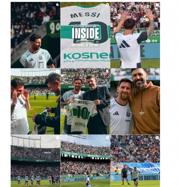足球比分网11月14日讯 梅西随阿根廷队在埃尔切主场训练,还获赠埃尔切10号球衣。超2万名球迷观看梅西和阿根廷训练。 从开始预热再到阿根廷出场、阿根廷训练、梅西获赠球衣、梅西与萨拉维亚交流、梅西与球迷打招呼,埃尔切官方社媒一直在更新,不算快拍,光是ins帖子就发了16条。