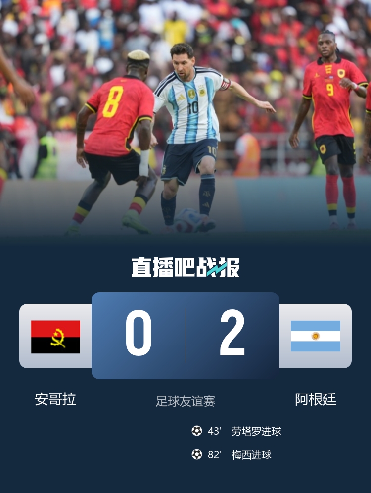 今天凌晨进行的一场友谊赛,阿根廷客场2-0战胜安哥拉,梅西和劳塔罗相互传射。 【其他新闻】 摩根声援C罗:这样被罚下太荒谬!梅西做了同样的动作啥事没有