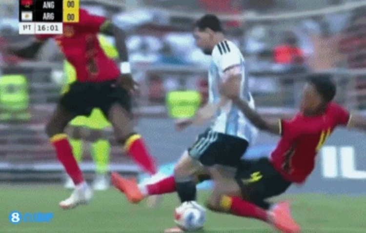 友谊赛这强度?梅西遭安哥拉球员背后剪刀脚,